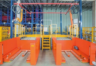 - Une zone de préparation de commandes située en tête des rayonnages : une solution courante dans les entrepôts automatisés
